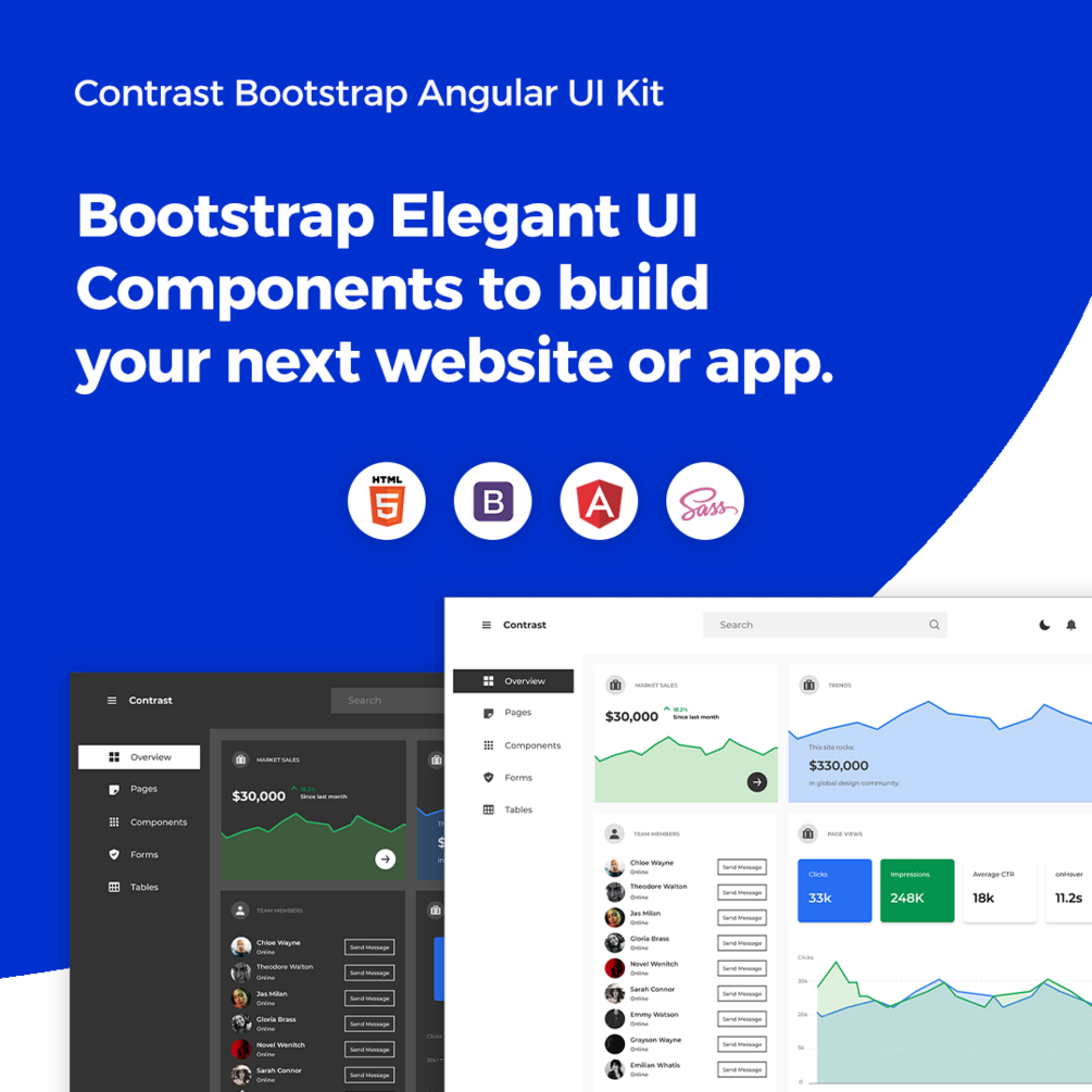 Angular Bootstrap Contrast PRO Library + PRO Admin Template is a multipurpose pro template, UI kit to build your next landing, admin, SAAS, prelaunch, etc project with a clean, well-documented, well-crafted template and UI components.